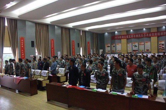 2016年4月10日湖北省宜都市移民生态农业技能培训班正式开班,本次培训为期22天,采用分段式培训,开班当天可容纳200人的培训教室座无虚席,聘请了果树专家杨承清讲解目前柑橘种植的要点和难点工作,还聘请了土老憨集团技术检测部门负责人对食品安全进行授课,特邀土老憨集团董…