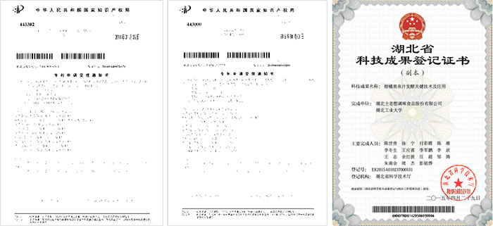 柑橘料酒是以蜜柑为原料耦合具有不同生长和代谢特点的多种微生物,通过发酵代谢调控技术,建立短周期的功能型料酒生产新工艺。在此工艺条件下,乙醇的含量不低于20mg/mL,乳酸的含量不高于20mg/100mL。此新工艺料酒除富含丰富的氨基酸和有机酸外,还赋予料酒全新的柑橘风味,且含有多种生物活性物质(黄酮/类黄酮和生物碱)。目前已申报1项发明专利《一种多菌种快速酿造柑橘型料酒及其生产工艺》。