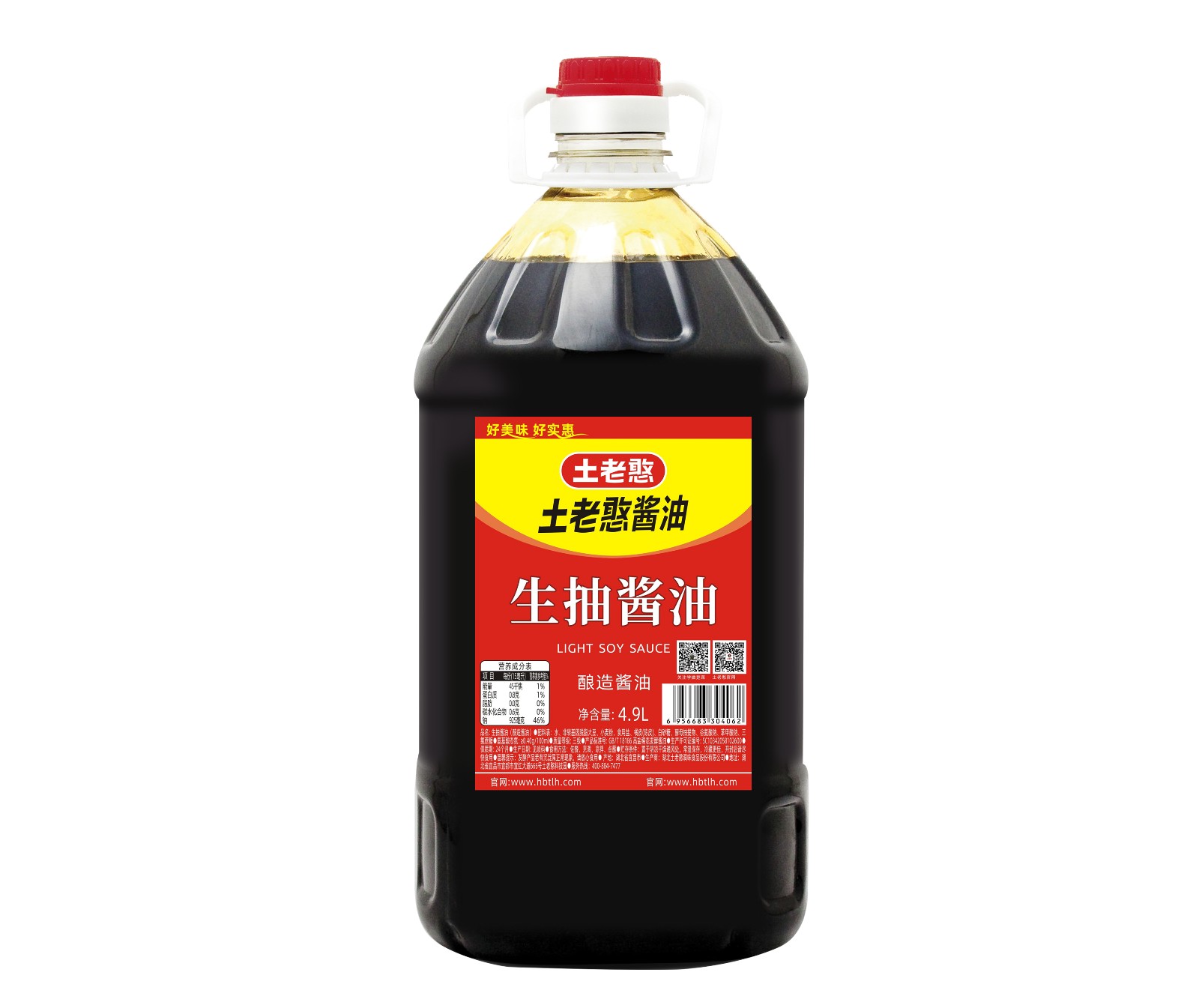品名:土老憨4.9L生抽酱油条码:6956683304062规格:4.9L/瓶件含量:2瓶/件市场价:28元/瓶